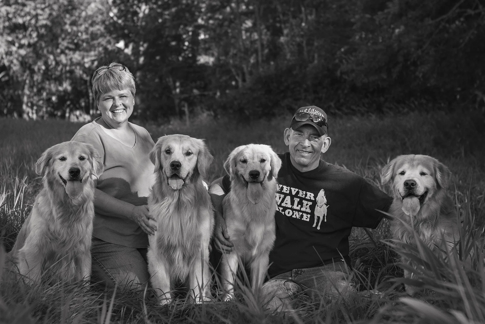 Mary and Glenn have been close friends for 15 years, so long that our friendship predates my love for photography!! (Now THAT makes me feel old!!) We have trained dogs for the disabled, for the show ring, for the police, tracking, field trials, SARs, agility, you name it! As different dogs came and went through life, Mary and Glenn have always had a pack of goldens of their own.