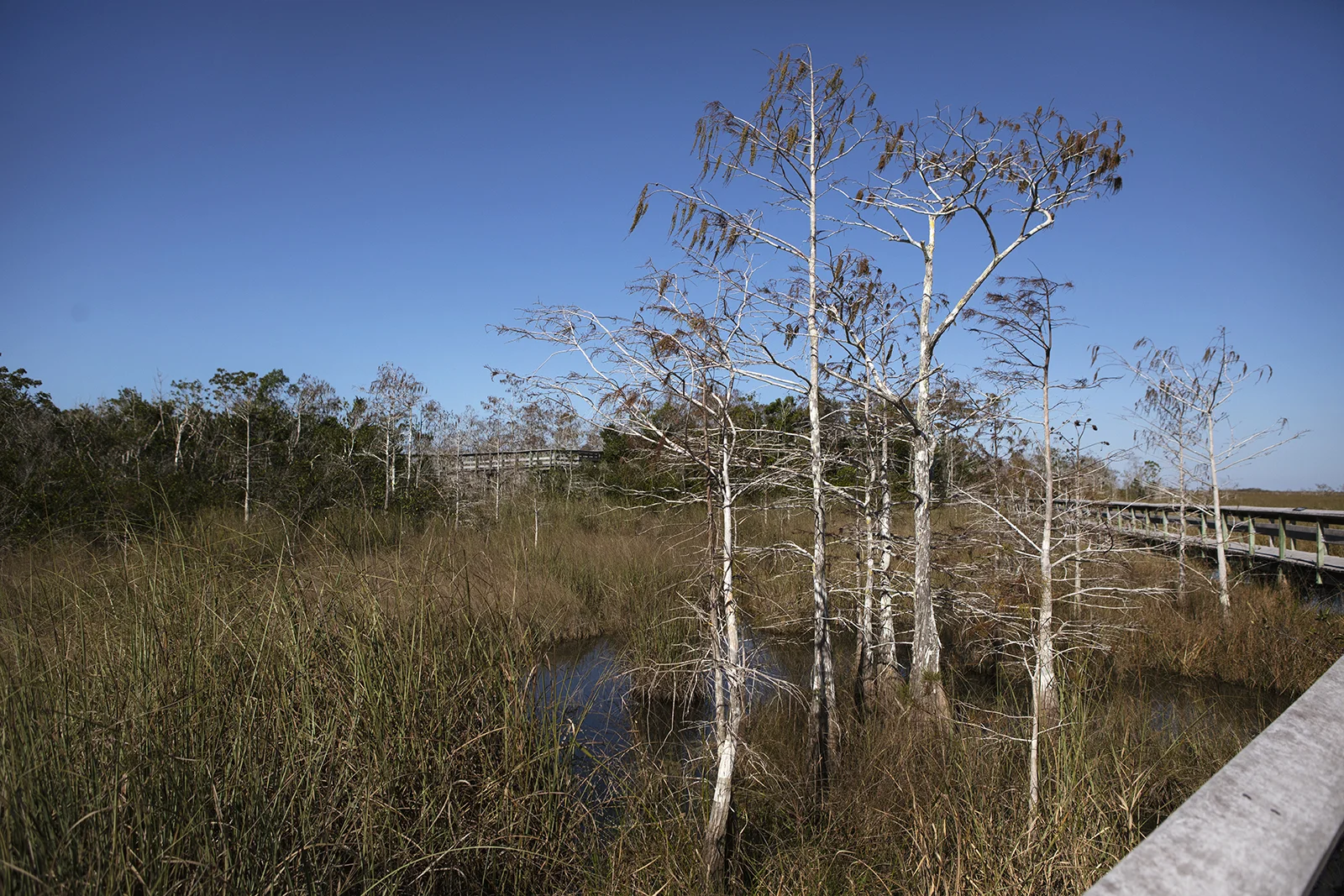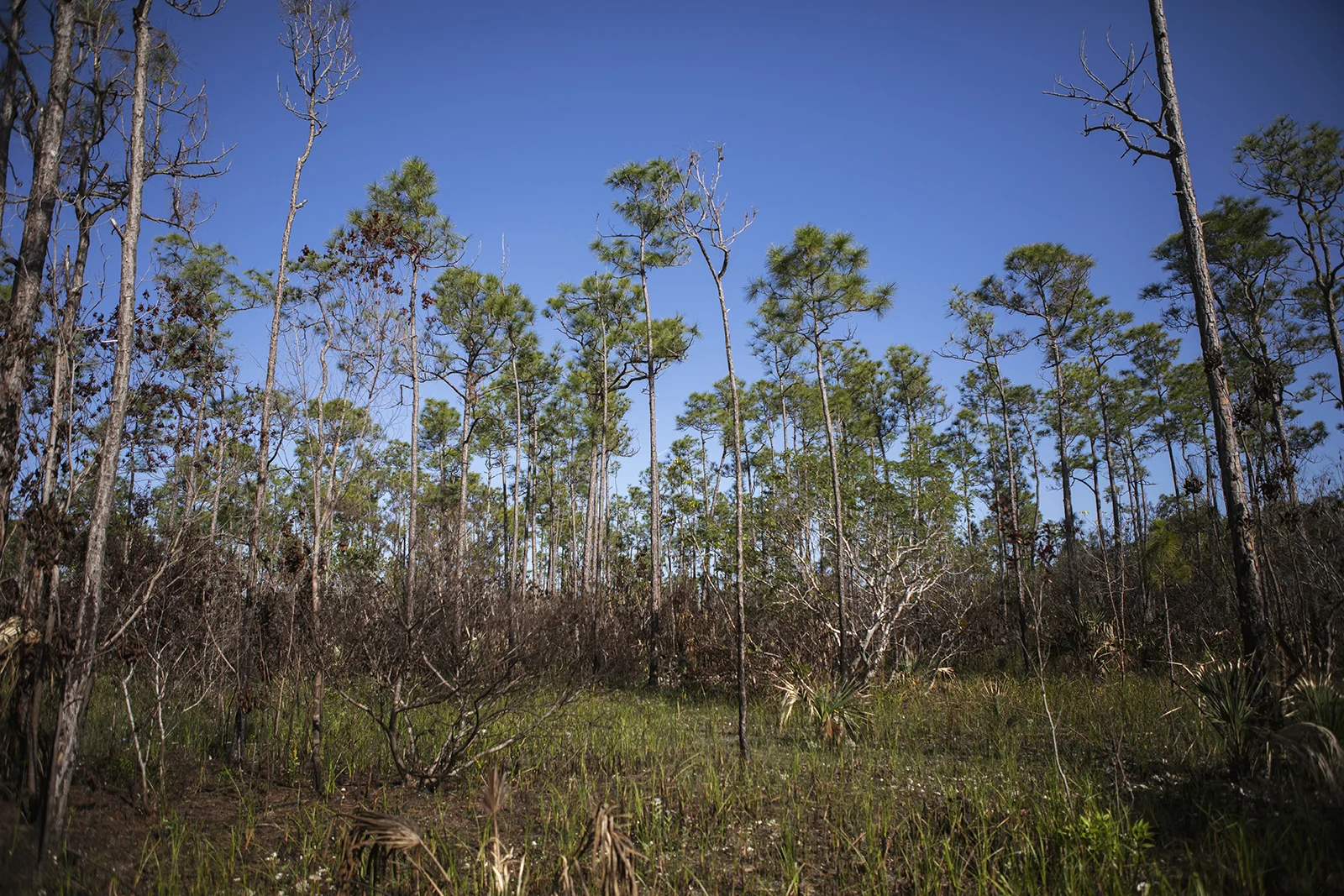 The pine trees were oddly tall, with only a few branches that held needles at the very top. The bark was scared from the latest forest fire, and with further research we learned that lightning strikes are common in the Everglades. To keep the park healthy, DNR leaves the fires to burn themselves out.