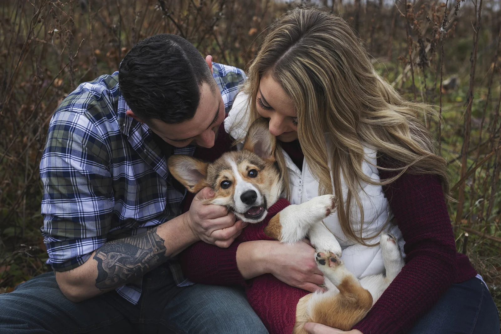 Chelsa, Jason, and Carl the Corgi met me in Grand Rapids for a Mini shoot that was supposed to last 30 minutes. However, I knew I would begging for more time to photograph them as soon as they got out of their truck and handed me the adorable ball of fluff named Carl! OMG, I thought MY corgi was the cutest! Carl for sure takes the cake for a red and white corgi!!