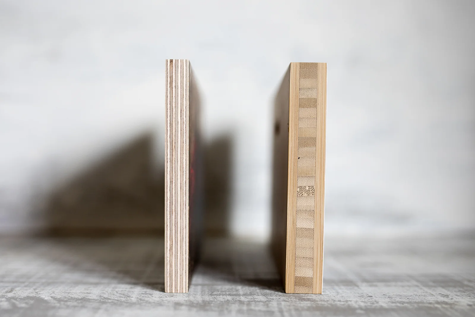 In comparison, the Wood Print is shown on the left, the Bamboo Panel on the right. The Wood Print is thiner and though the colors are still vibrant, the lighter tones are more subtle, allowing the grain to show through.