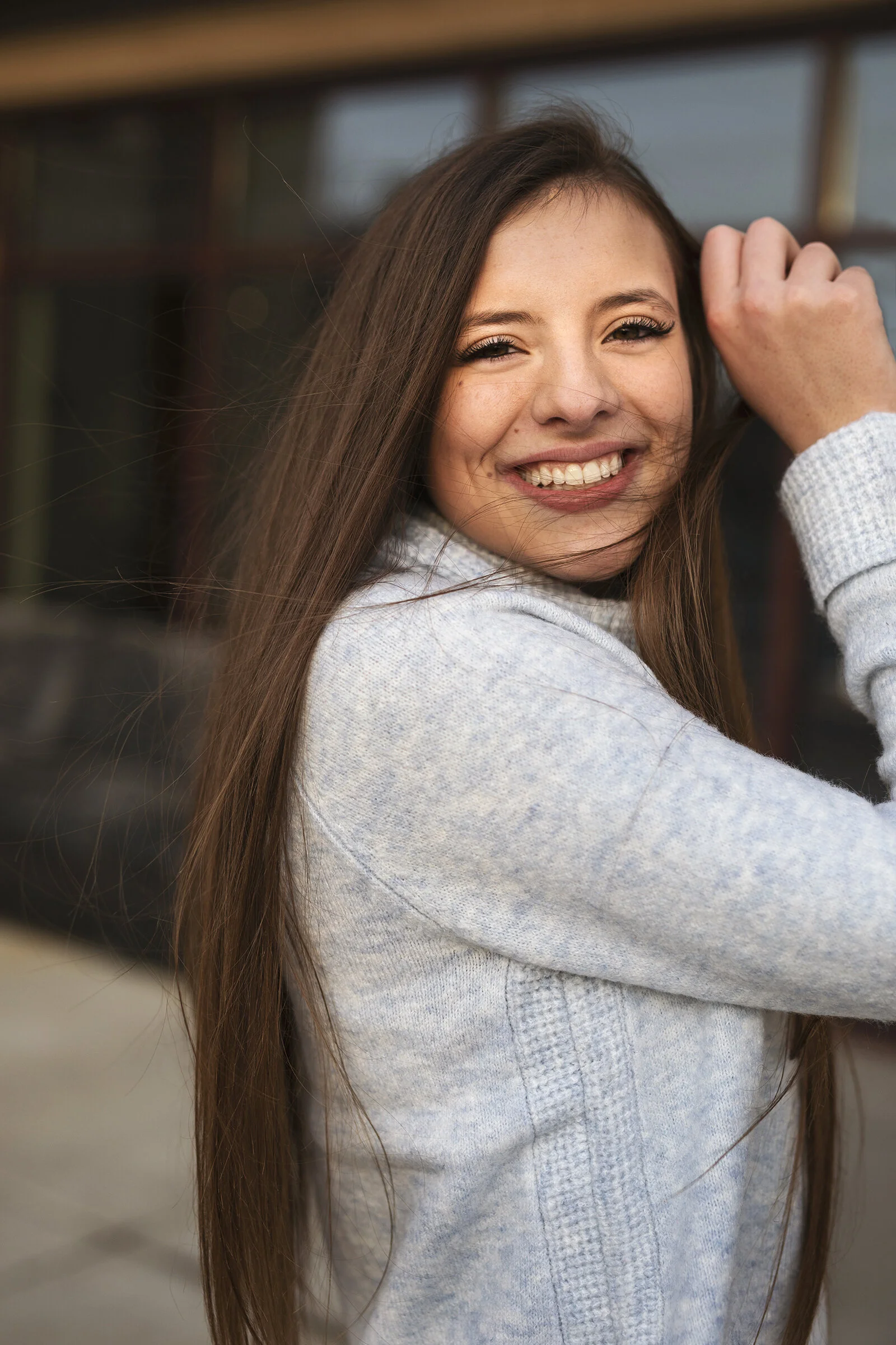We worked quickly to squeeze in multiple clothing changes, the two horses outside and then inside against a black background, then headed downtown Ada to photograph Brooke by herself - minus all the horse slime! We laughed a lot, held on tightly to our hand warmers, and tried not to become popsicles! But it was worth being a bit cold for, because yet again, Brooke’s beauty shined through in every photograph, resulting in a wonderful collection of memories.