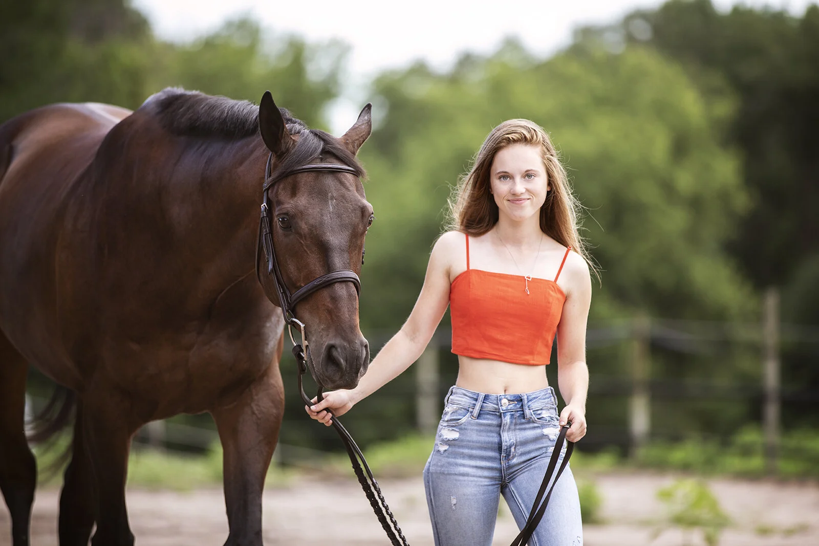Her horse, Titan, was feeling fresh that morning, and the horses in the surrounding pastures were doing all they could to rile him up for us. We adjusted our methods to capture her photos, even changing locations to hide from the trouble makers in the pastures. All along, Miss. Paige kept a smile on, and with a bucket full of patience and calm energy, she helped her horse settle, providing me with me the ability to capture her images with precise timing as Titan danced around.