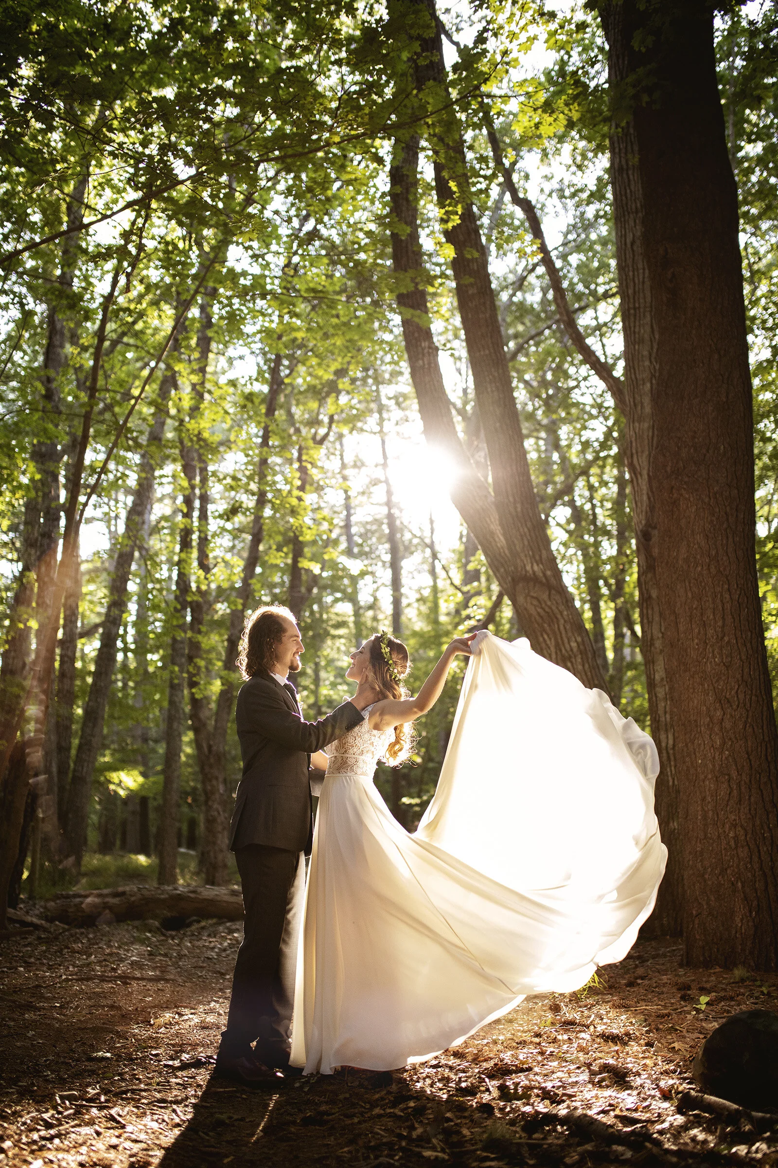 We hiked to the forgotten ruins of an old Rockefeller mansion, and Graham spun Stephanie around the old dance floor, her dress fluttering behind her. We found the tree their grandfather nailed a tack into decades ago, and continuing their legacy, they nailed two more tacks into the thick armored bark. Champlain Mountain stood high and proud, gifting us gorgeous light, gently unfurled across the marsh lands between the road and it’s balding rock face. The waves below Otter Cliffs clapped their approval, and Graham laughed as Stephanie danced in her happiness of finally marrying her best friend. They fell into each other, two souls as one, unguarded and joyful as I captured their endearment for one another.