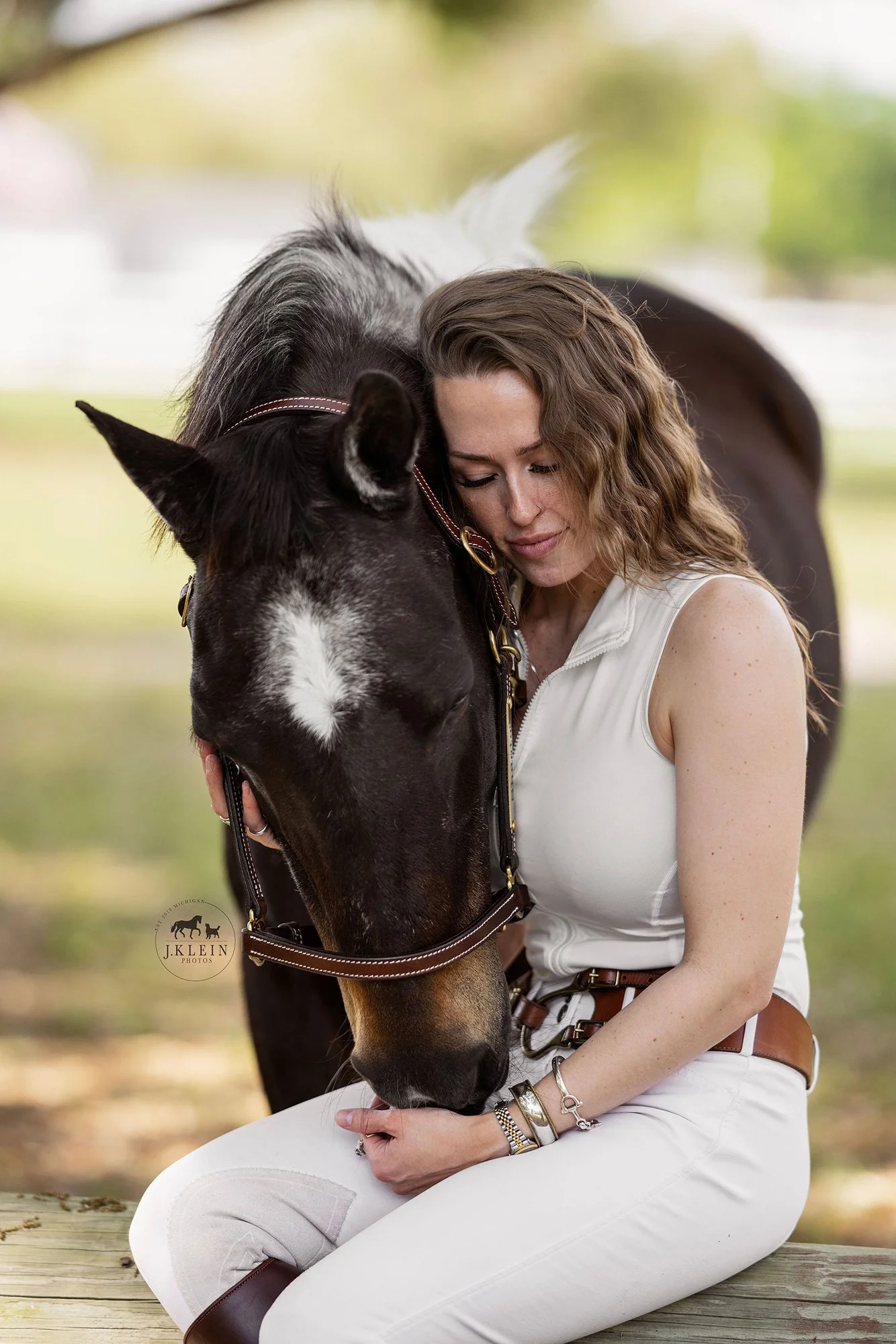 J.Klein Photos - Traveling Equine Photographer Specializing in Dressage, Hunter and Jumper Disciplines- Fine Art Equine Portrait Photoshoot - White Black Background Images - Lithia, Florida - Horse & Rider Photoshoot with Heart Horse